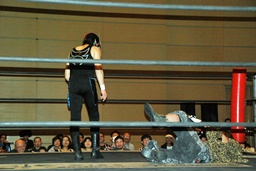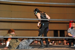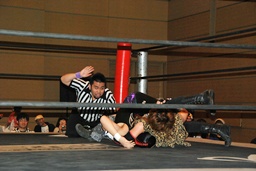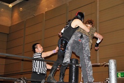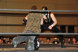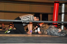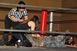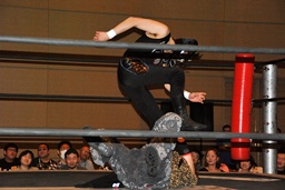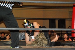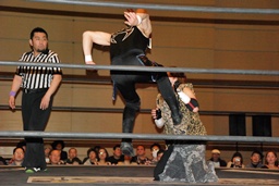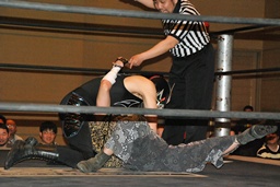 つぶれる(右写真)、カウント2。ニラ切り返して上に、カウント2。