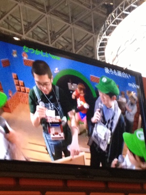 任天堂の生中継に見切れるディーノ(右写真)。