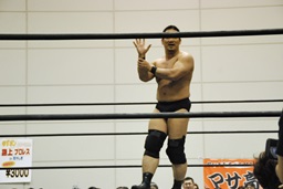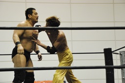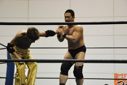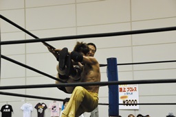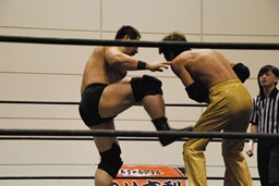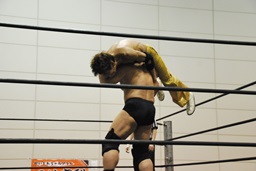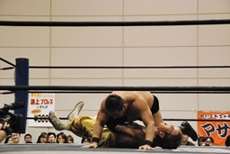 高木はダブルアームに捕え三四郎スタナー2000(右写真)、これでカウント3。