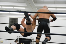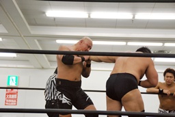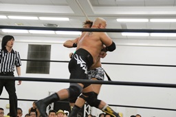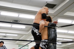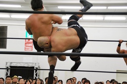 そしてブレーンバスター(右写真)、相島にタッチ。5分経過。