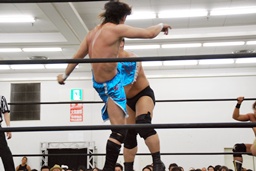 今日は現リングネームの「KENICHI」ではなく、近野剣心で登場(右写真)。