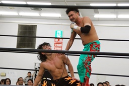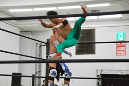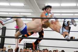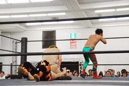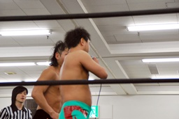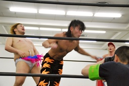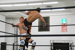 パロマムーンサルトプレス(左写真)、カバー、ディーノがあてがいでカット。