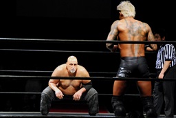 星誕期組みついてロープに詰めるが(右写真)ブレーク。