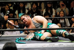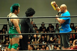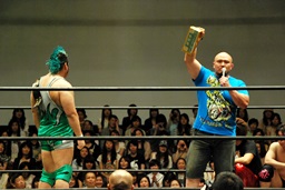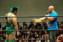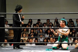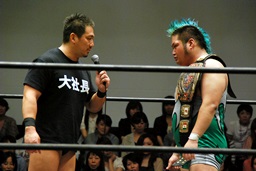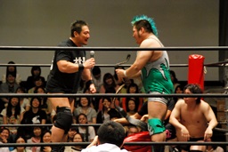 いまいち会話がかみ合ってなかったが岡林は次回7/21後楽園大会での行使を表明(左写真)。もちろんそれまでに大日本その他の興行で負けないことが条件。DDTは佐々木にやったように強豪に当て続けるってことしないのだろか?