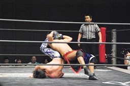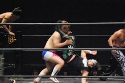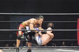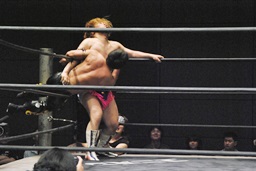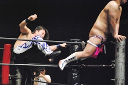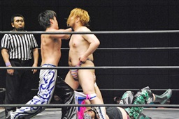彰人がKUDOをカタプルパ、KUDOは大石の尻に。凄い画に(右写真)。