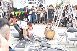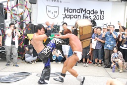 ということで主催者の方を呼んで「3、2、1、破壊なくして創造なし、う〜、ハンドメイド!」という合わせにくい締め(左写真)。