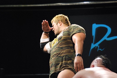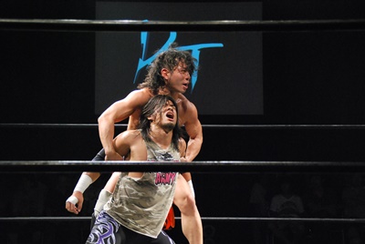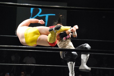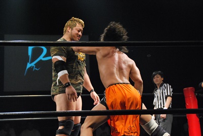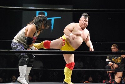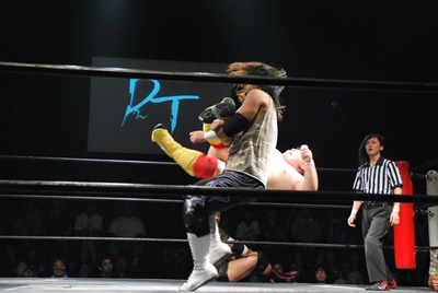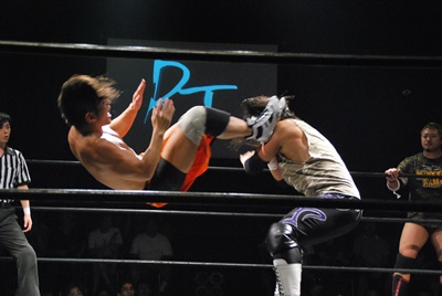 高梨ソバット、伊橋レッグラリアット(左写真)、カウント2。