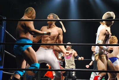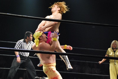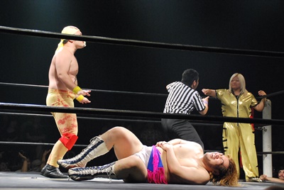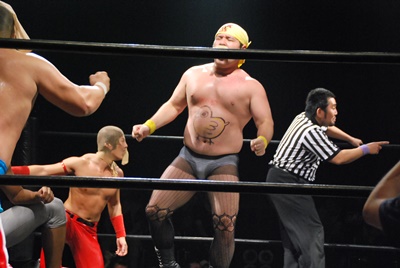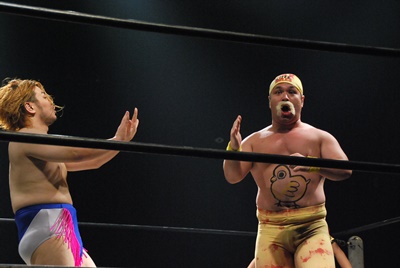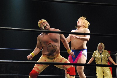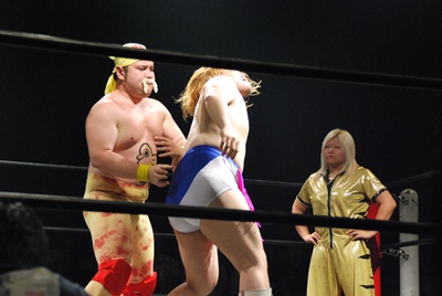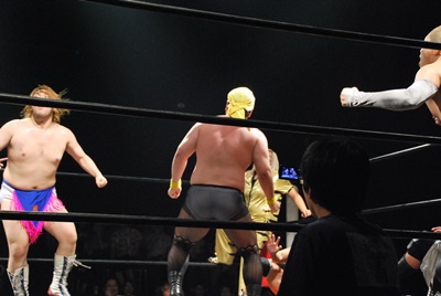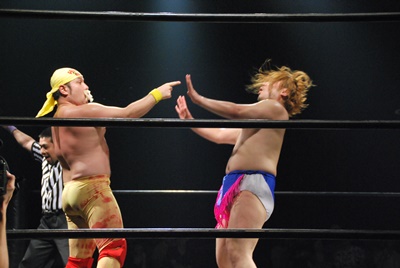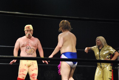 試合は男色ディーノvsハルク・ホーガンの形で(右写真)。