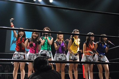 7人がリングに勢ぞろい(右写真)。