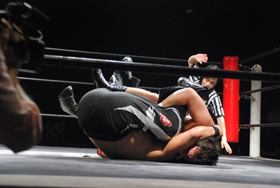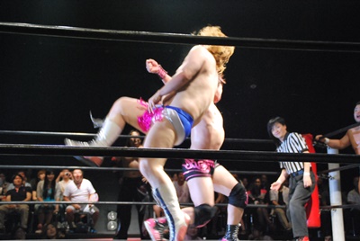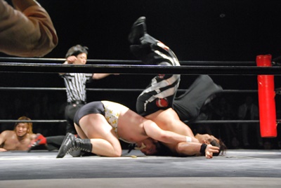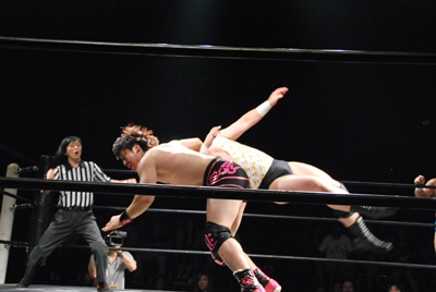 アントンラリアットかわして逆さ押さえ込み(右写真)、カウント2。