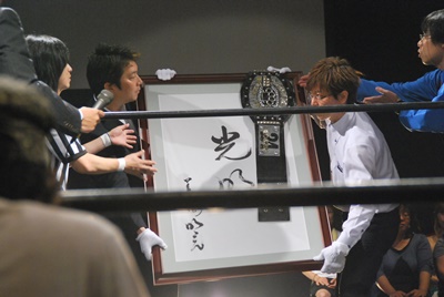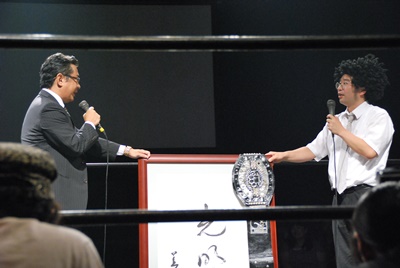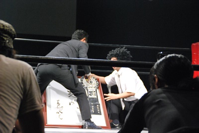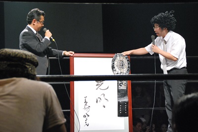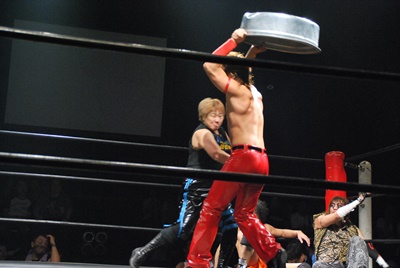 GAMIメガホン連打、高尾とGAMIがつかみ合い(右写真)。