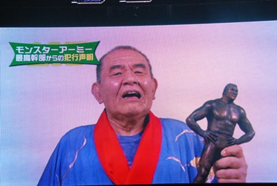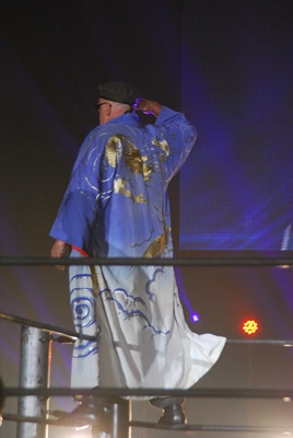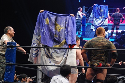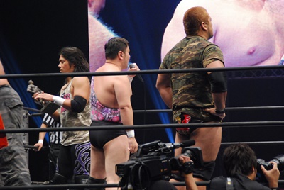 「我々がチンしたブロンズ像とガウンという坂口家の財宝をヤフーオークションに売ってお金をせしめようと思っています。もしオマエらがプロレスで勝利すれば我々もプロレスラーだから素直に返す。ね、元帥?」