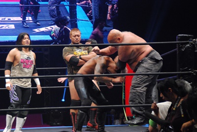 彰人はアントンと佐々木を2人まとめてドラゴンスクリュー(右写真)。