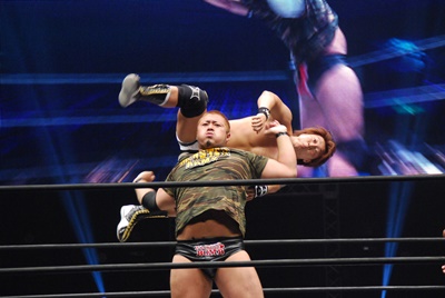 ヒノスープレックス(左写真)。