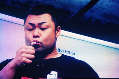 ドラマ映像からスタート。新木場駅の自動販売機でタバコを買った松永、1st RINGに着くと早速吸う(右写真)。日本禁煙学会が黙っちゃいないぞ!