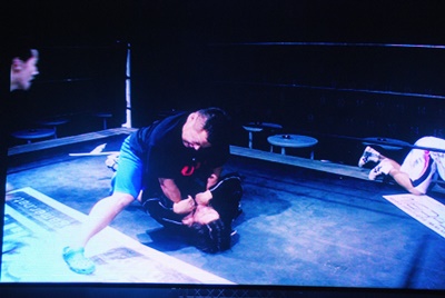 さらに首絞め(右写真)、練習生が引き離す。