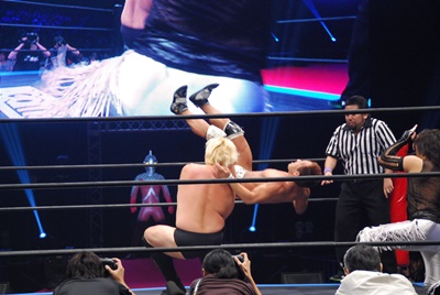MIKAMIコーナーに上って450°スプラッシュ(右写真)、カウント3。