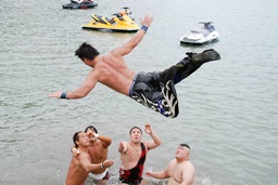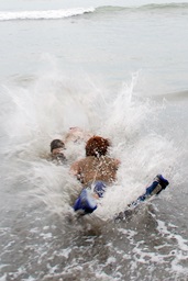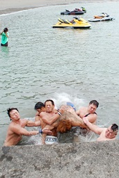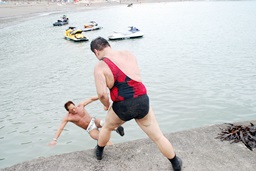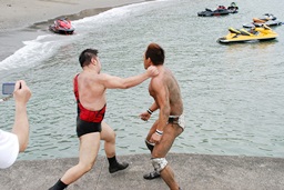 マイケル海に転落(右写真)。