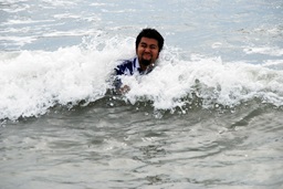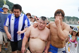 松井さん波に呑まれる(左写真)。