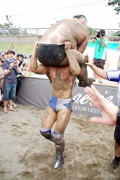 「鍛えているからだー!」(右写真)
