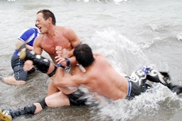 アントンとマイケル堤防に移動。アントンパンチ(右写真)、