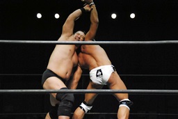 突如組まれた「中澤マイケル試練でしかない3番勝負」、その1が今日高松、その2が明日博多で相手はいずれも大社長。いったい何やるのかと思ったら試合前に井上リングアナから「両者の強い要望により、まるでタイトルマッチのような重厚な試合を行います」とアナウンス。「重厚」かあ・・・。