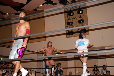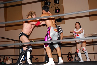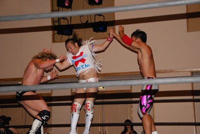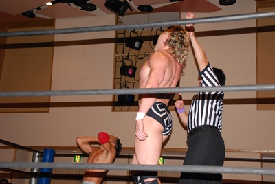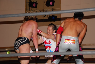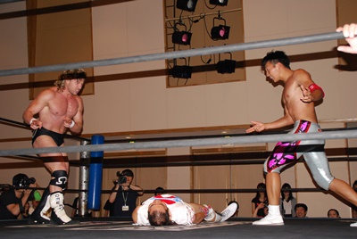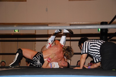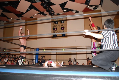 「ミシシッピ!」そのまま2人で押さえ込んで(右写真)カウント3。
