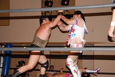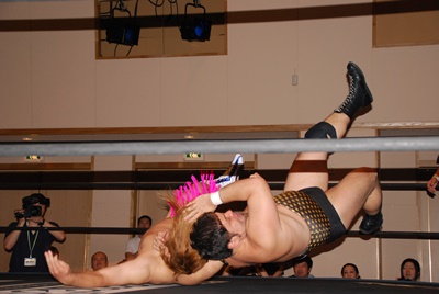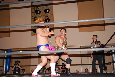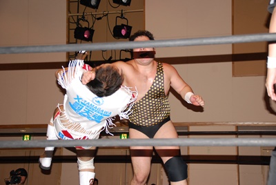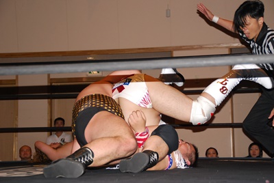 アントンばってんにバックドロップ(左写真)、カウント2。