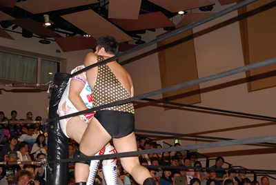 アントンばってんをコーナーに詰めてパンチ連打(右写真)、ニーリフト。