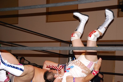 アントンはディーノを場外に出してばってんにDDT(右写真)、