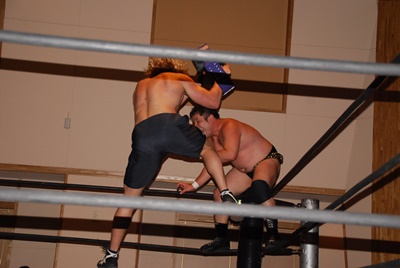 アントンはケニーにパンチ連打(右写真)からダスティ、ボディスラム、