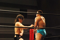 高梨主催興行のメインだったな、このカード。握手でスタート(右写真)。