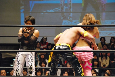 MIKAMIがKUDOにネックロック(右写真)、