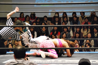 チェリーに腕極めスク〜ルボ〜イ(左写真)、カウント3。