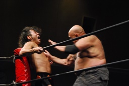 リングに戻すとブレーンバスター(左写真)、カウント2。