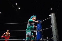 入江エルボー(右写真)、松永ダウン。入江は高尾にタッチ。