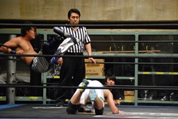 イワンはウラノのバック取ってジャーマン、HARASHIMAも振り落とす(左写真)。ワンチューロがウラノをカバー、カウント2。