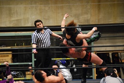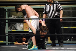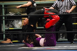 ボニーがさくらの腕をひねる(右写真)、さくら切り返す。ボニーはイワンにタッチ。