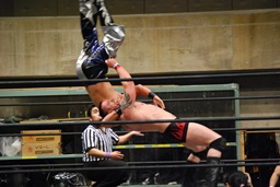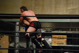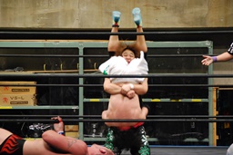 HARASHIMAファルコンアロー、イワンブロックしてブレーンバスターに(右写真)。