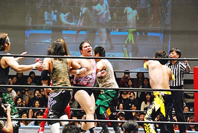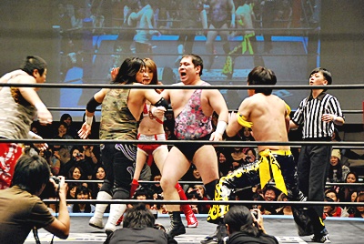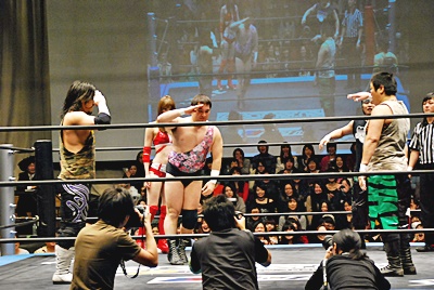 第3試合 GAMI、佐々木大輔、アントーニオ本多 vs KUDO、ヤス・ウラノ、赤井沙希