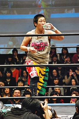 佐々木ウラカンホイップ(左写真)GAMIと赤井がリングイン。