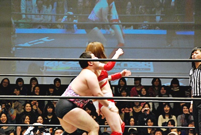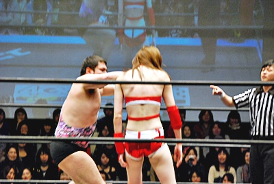 赤井沙希がサンタコスでリングイン(左写真)。これがプロレス3戦目。