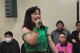 さくらシンギングタイム(右写真)。お題は「パンチパーマ」。これは1ポイント、同点に。7分経過、残り試合時間3分。