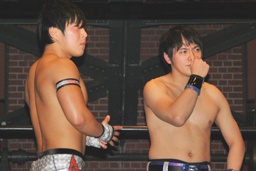 佐々木ナックル(左写真)、佐藤もパンチ打ち返す。
