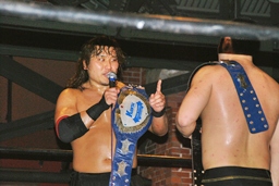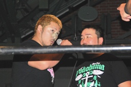 関根「ドラゴンスープレックスで夢狩人に勝ったぞー!代表、ショー・フナキさん、いつでもリベンジ受けますよ。シングルでもいいぞ!」(右写真)
