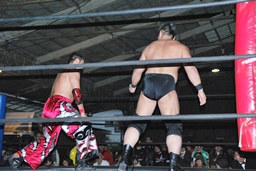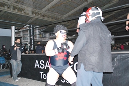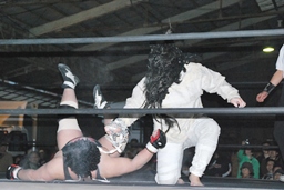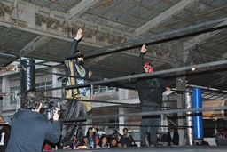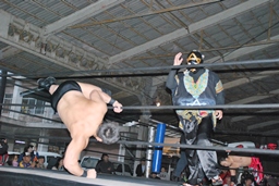 息子とはエル・イホ・デル・ゴロー、Xにパンチ(右写真)、XXにコーナースプラッシュ。佐々木にタッチ。