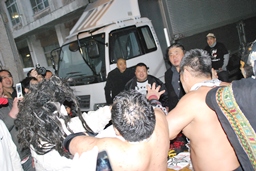 高木&佐々木は鶴見五郎参戦を要求(左写真)。しかし鶴見は試合ができる状態ではない。「息子がいる」と鶴見。