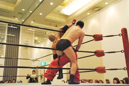 コブラツイストの掛け合い(右写真)、ブレーク。