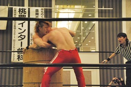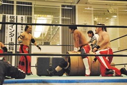第1試合が若手の試合、第2試合がコミカル、第3試合がテクニック合戦、セミがヴェテラン勢の試合でメインが「現在進行形」のBAD BOY vs 阿修羅、しかも適度に変なルール。これは面白い。