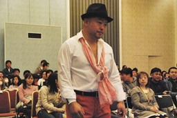 まずは気仙・沼ジローラモの歌のコーナー(右写真)。